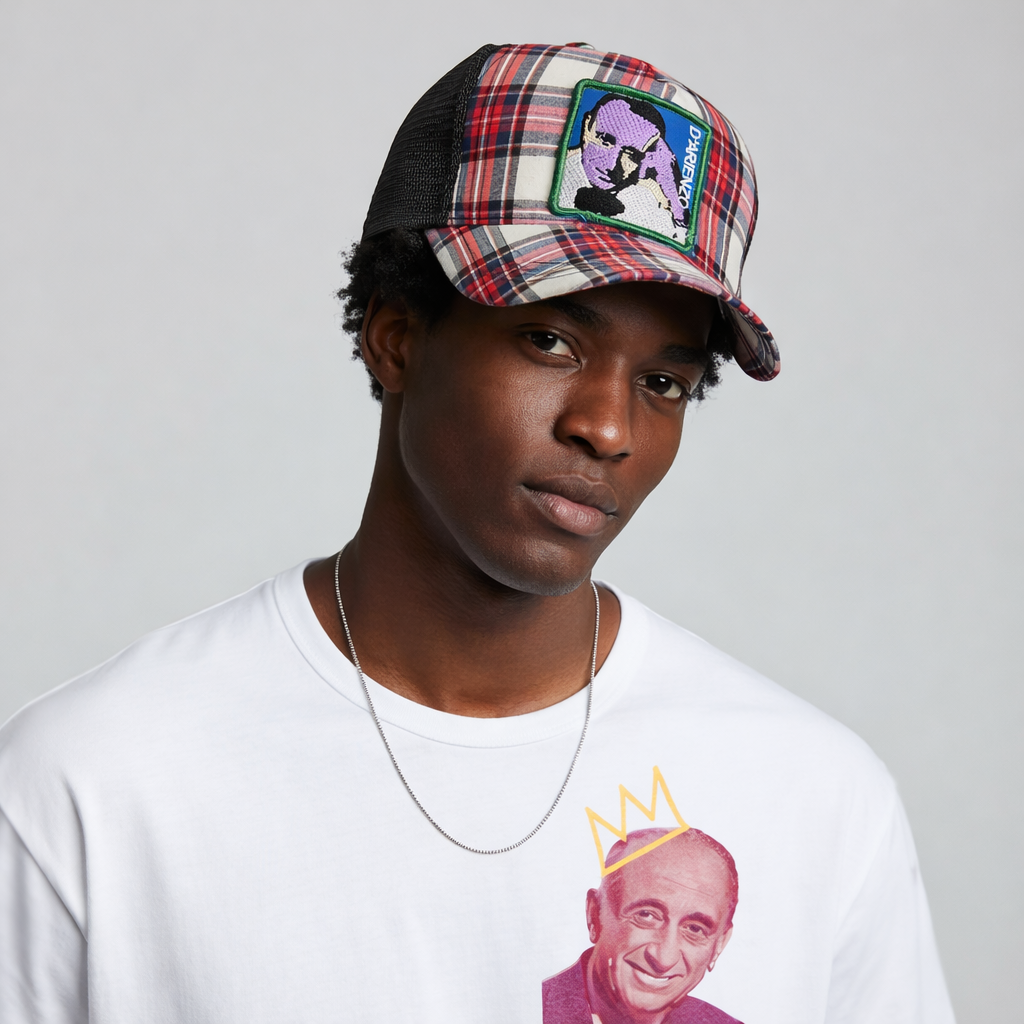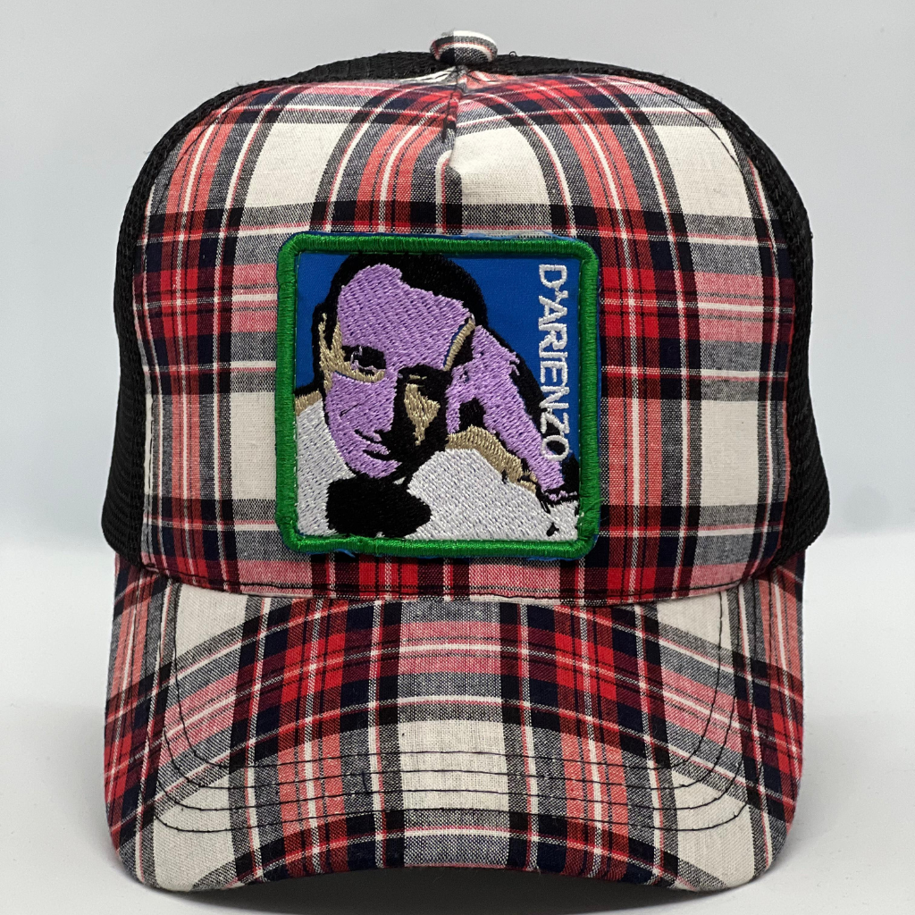 D’ARIENZO Black/red tartan trucker cap