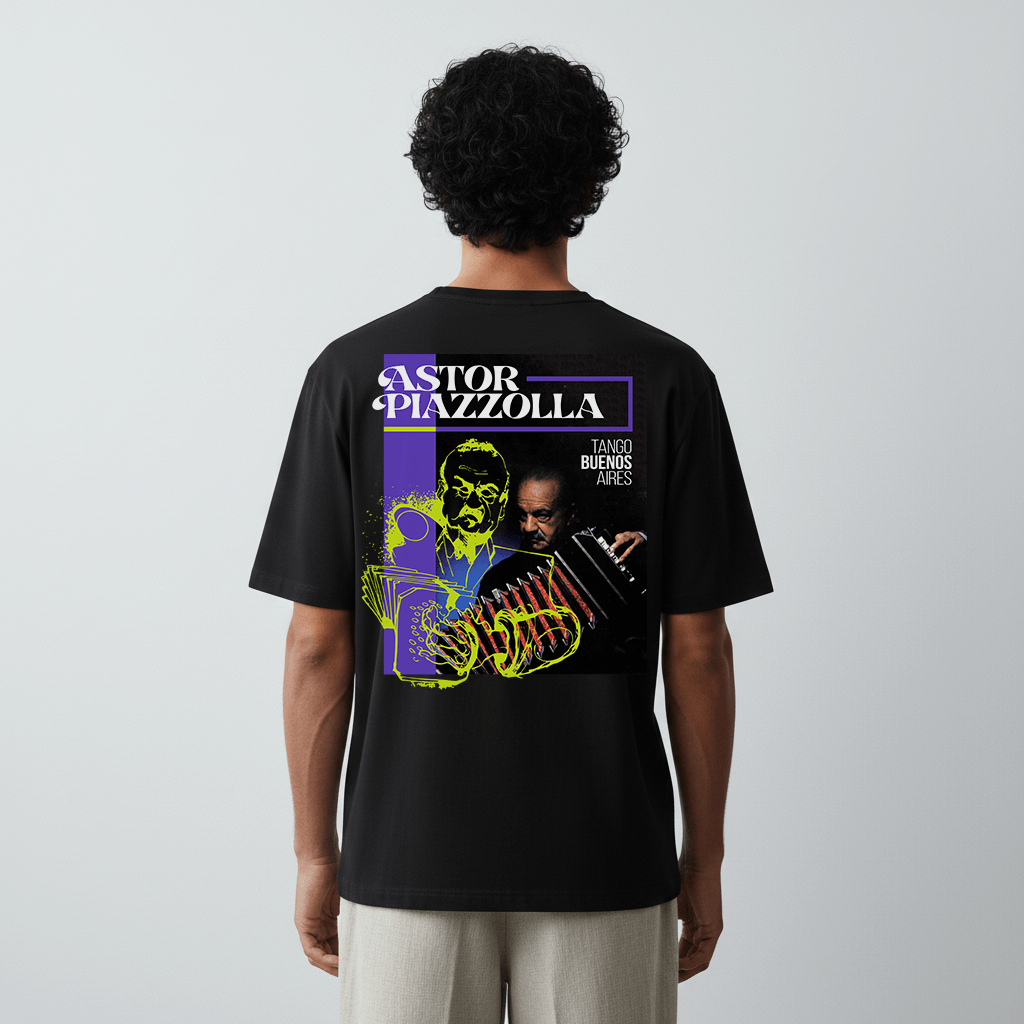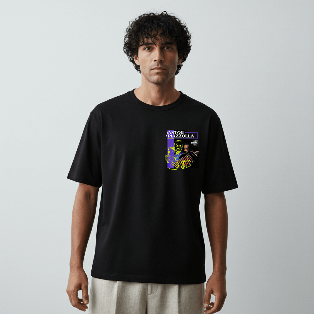 €45.00100% combed cotton T shirt inspired by the tango culture and its characters. The DTG prints were designed by our creative director, after a deep search inside the tango historical archive. In this case evokes the famous Composer/musician PEDRO LAURENZ. The fit is relaxed although it also can be pursued in an oversized option for a casual streetwear look. …