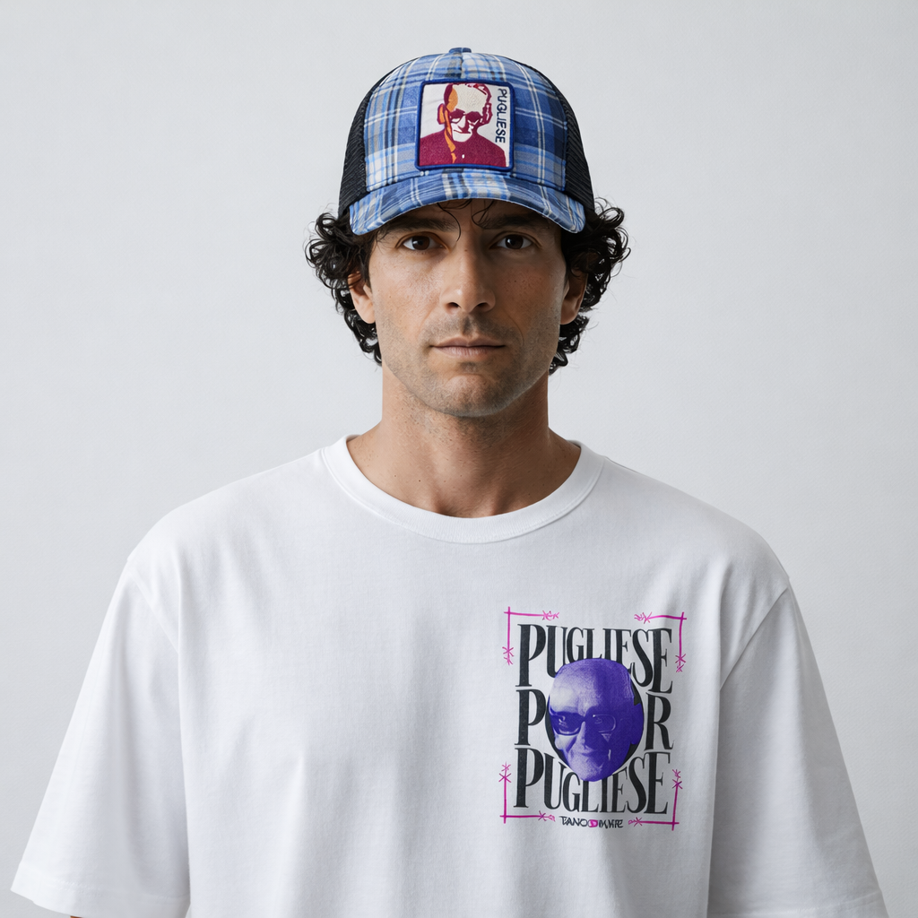 PUGLIESE Blue tartan Trucker Cap
