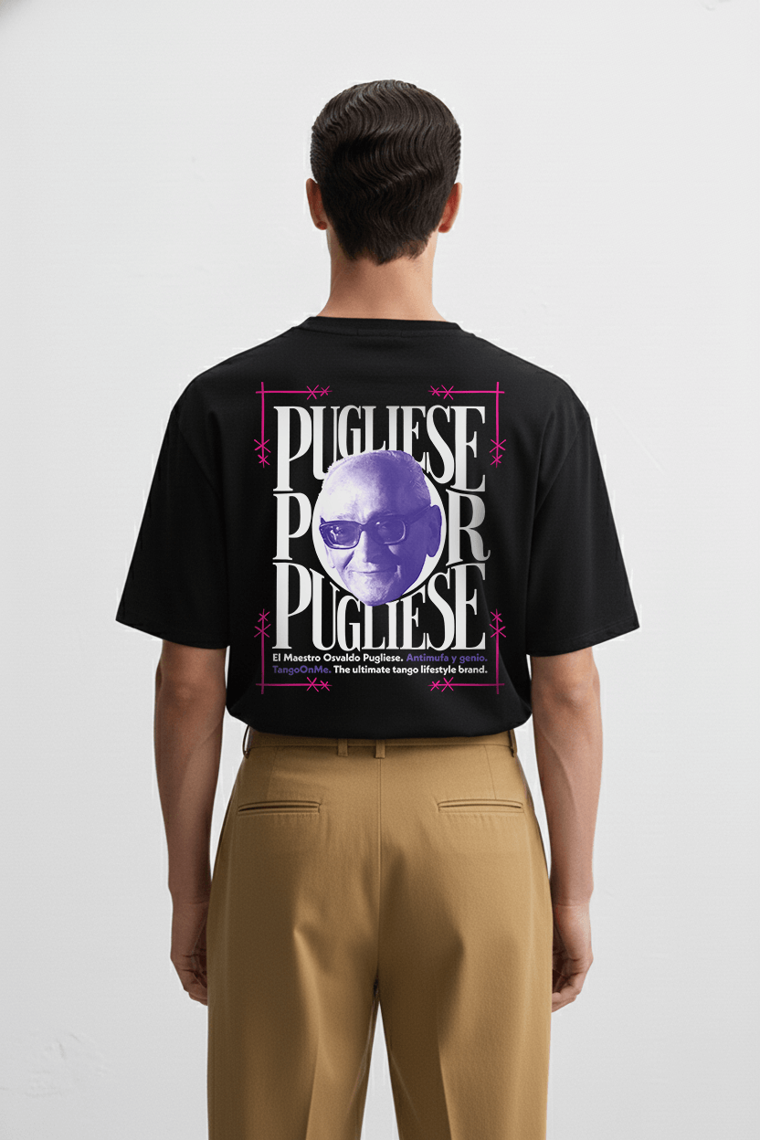 €45.00100% combed cotton T shirt inspired by the tango culture and its characters. The DTG prints were designed by our creative director, after a deep search inside the tango historical archive. In this case evokes the famous Composer/musician OSVALDO PUGLIESE. The Tango on me institutional prints are made with high quality standards and designed by our creative director. The…