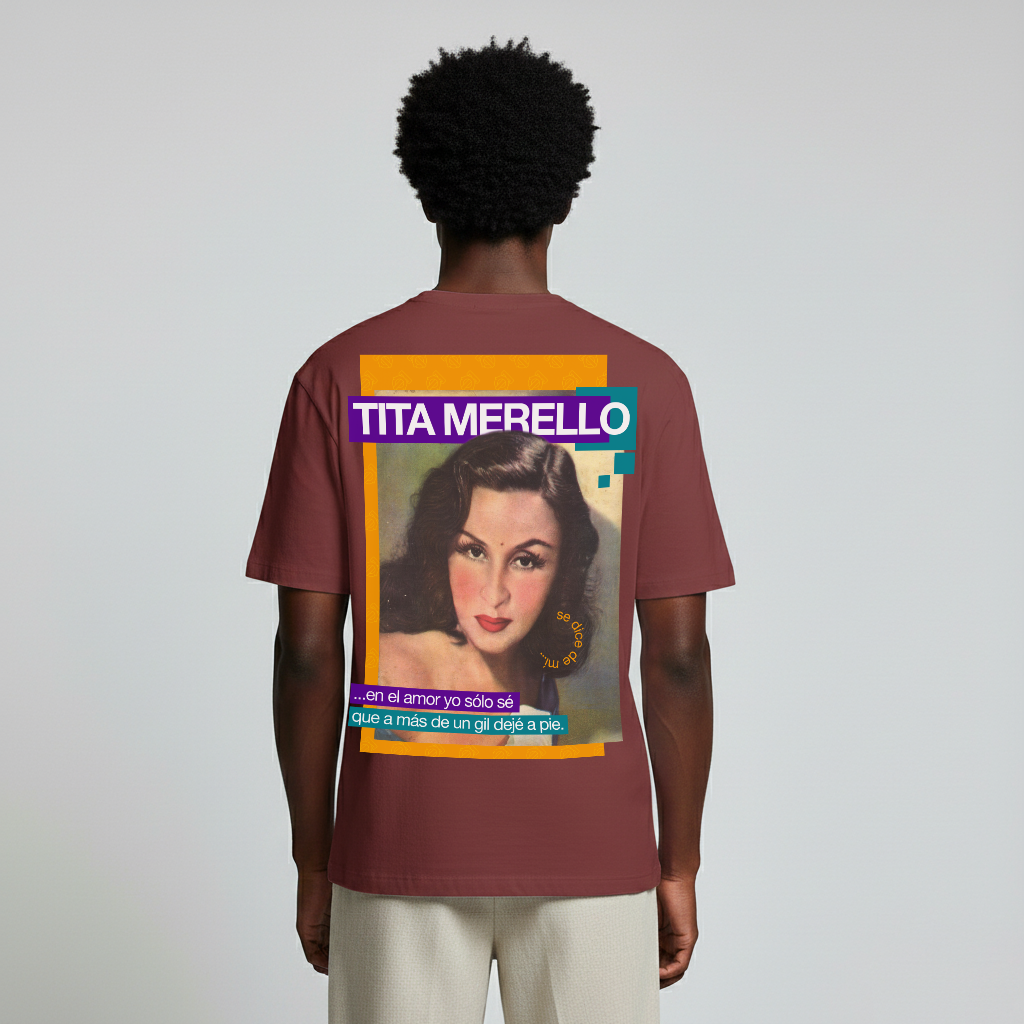 €45.00100% combed cotton T shirt inspired by the tango culture and its characters. The DTG prints were designed by our creative director, after a deep search inside the tango historical archive. In this case evokes the famous Composer/musician ANIBAL “PICHUCO” TROILO. The fit is relaxed although it also can be pursued in an oversized option for a casual streetwear…