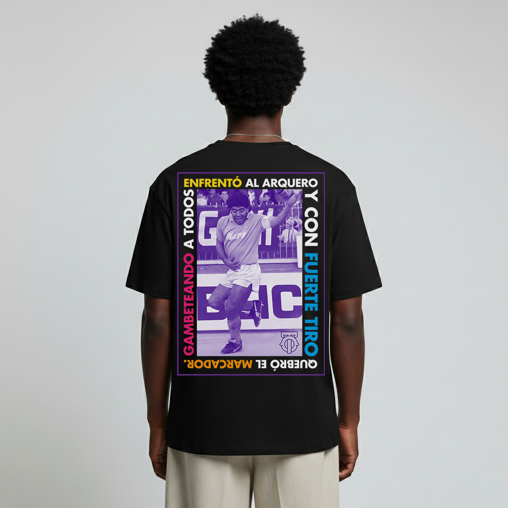 In this case evokes the famous soccer idol DIEGO MARADONA and evokes the tango “El sueño del pibe”.