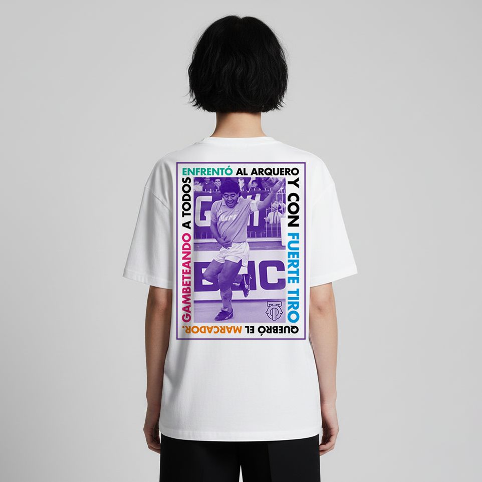 In this case evokes the famous soccer idol DIEGO MARADONA and the tango “El sueño del pibe”.